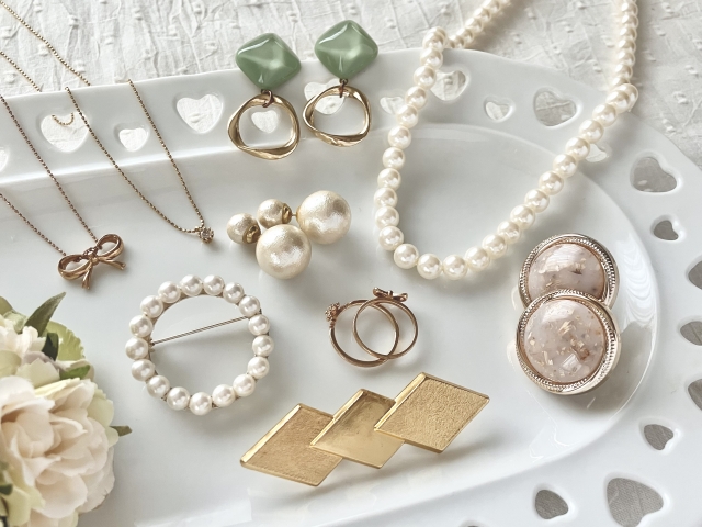 ビジューやコットンパールのネックレスなど大ぶりのアクセサリーでも、プレートにのせるだけでロマンチックな佇まいになります。