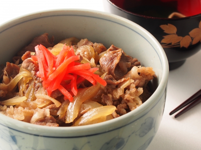 牛肉たっぷりの牛丼はカロリー高め。